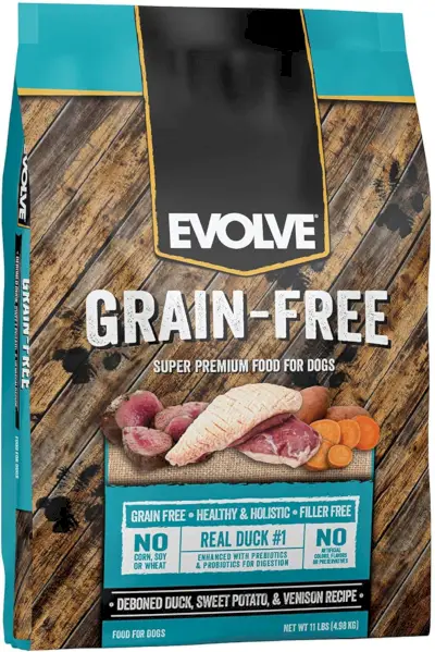 Рецептата за беззърнена обезкостена патица, сладък картоф и еленско месо на Evolve е страхотен избор за чувствително към глутен кученце. Въпреки това, ако вашето куче няма чувствителност, може да искате да изпробвате опция, включваща зърнени култури от Evolve, освен ако не е указано друго от вашия ветеринарен лекар.