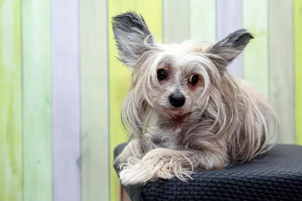 - 2つのコート品種。 re are two coat varieties of Chinese Crested dogs: hairless そして powderpuff. Hairless 中国の紋付きはそうです completely hairless, except fまたは tufts of hair on the head, tail、 そして ankles. Powderpuff Chinese Crested dogs have a soft, silky coat.